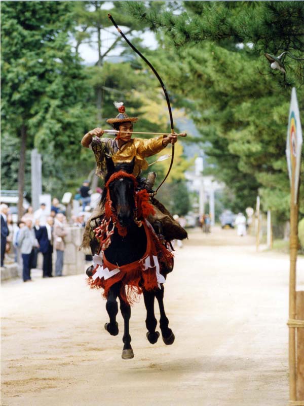 sniper? or snapper?の所に有る、別の流鏑馬写真と同じ日に撮影したものです。少しでも早いシャッター速度で撮りたくて高感度フィルム、露出は何度も計り直してマニュアルで設定しました。地元のコンテストだったので、同じように流鏑馬写真は沢山有りましたが、実は私が撮ったところの横にテレビカメラがあったんですよ(笑)だもんですから、しっかりカメラ目線になっているのがすこしおもしろかったですね。連写して、きれいに4本足が浮いている写真を撮れました。欲を言うなら・・・太陽がもう少しでて影が欲しかったのと、前日の雨がなければきっと砂を巻き上げてもっとかっこいい写真になったのになあ・・・って思います。 | |||