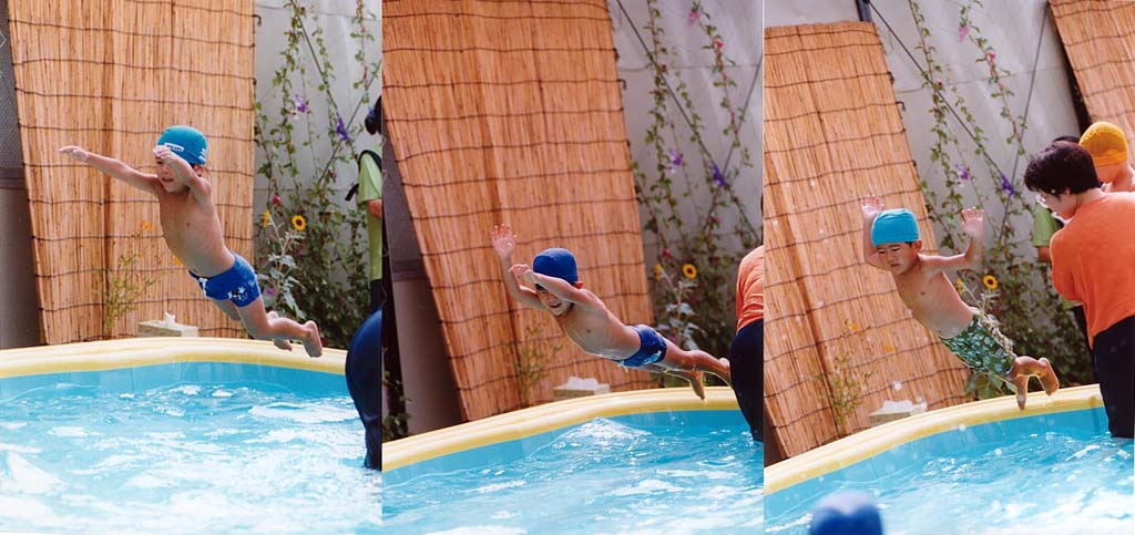 とある保育園での参観日です。ニコンの誇る高速シャッターを使う為にISO400のフィルムと明るいレンズで撮影。モードが絞り優先になっているのは、シャッター優先にすると開放絞りでも間に合わなくなるので(天気があまり良くなくて、曇ったりしてました)絞り開放でシャッターはできるだけ早くってコトで設定してます。 | |||