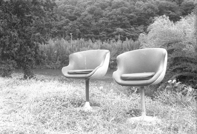仕事でうろうろしていた時に、ジュースを買おうと思って止まった川沿いの自動販売機の横にあった椅子。この椅子から横を流れる旭川が見えているんですが、近所の人が夕涼みにでも使ってるのかなって感じでならんでいました。数人に「ほんとにこんな風においてあったの?」と質問されたんですが、ほんとにこんな風に置いてあったんですよん。モノクロだからこんなイメージに仕上がってるんだろーなあ・・・ | |||