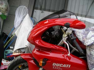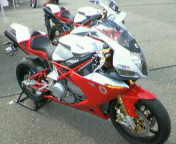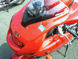 車検が終わって、DUCATI福岡のテントの下に行ったら、toshi-ss900さんのバイクにゼッケン(?)がついてる(笑)