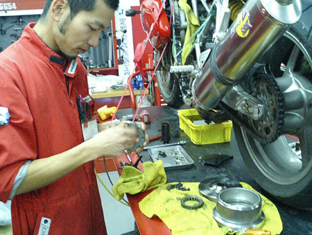 ↑ハマちゃんによる交換作業(photo:マネージャー)