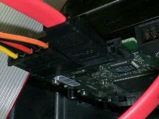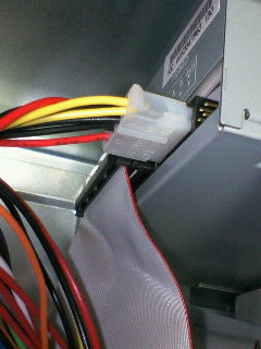 シリアルATAの電源コードとマザーボードへのケーブルを差込