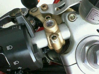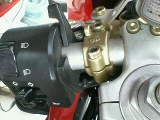 で・・・ダメもとでバイク屋に行って相談してみたら・・・・同じ色でミラー取り付けができるタイプのクラッチレバーのバンドがあったので、譲ってもらった。