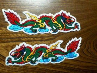 最初は背中に龍の刺繍でも貼ろうかと思ってたんだけど・・・・いいのがない。